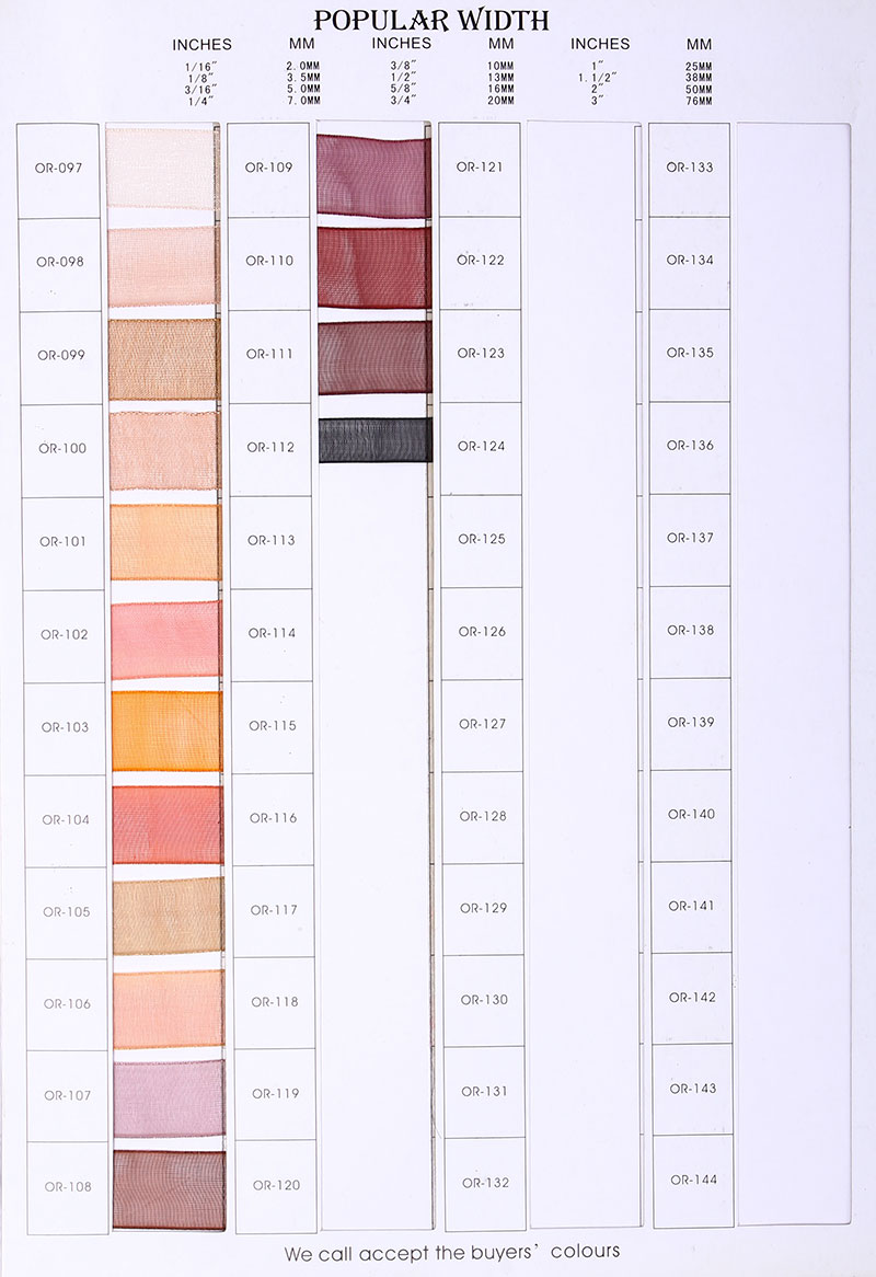 Organza ribbon color card |