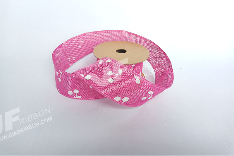 Embossing polyester linen ribbon YH-434 Fucshia 38mm