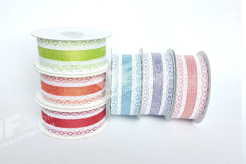Embossing polyester linen ribbon YH371 Lilac 40mm